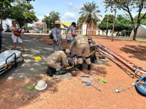 Um trabalhador de 39 anos ficou ferido após cair de uma estrutura metálica de aproximadamente seis metros de altura na manhã desta terça-feira (27), na