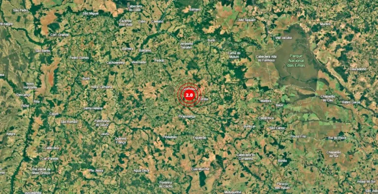 Um tremor de terra de magnitude 2.0 foi registrado próximo a Alcinópolis, município sul-mato-grossense distante cerca