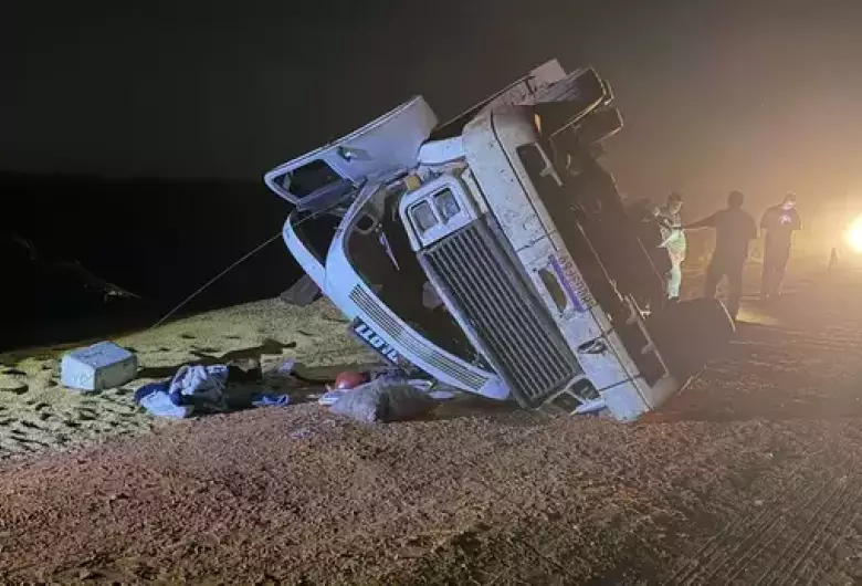 O motorista perdeu o controle da direção, fazendo com que o veículo tombasse às margens da estrada. Com o impacto, parte da carga de soja ficou espalhada pela via, de acordo com site NovaNews.