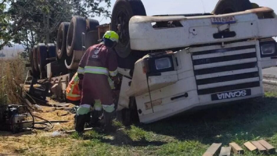 Um motorista morreu na tarde de terça-feira (14) após o caminhão que dirigia, carregado com milho, sair da pista e tombar na BR-163, entre os municípios de Naviraí e Juti, no Mato Grosso do Sul. A vítima, ainda não identificada, ficou presa às ferragens.
