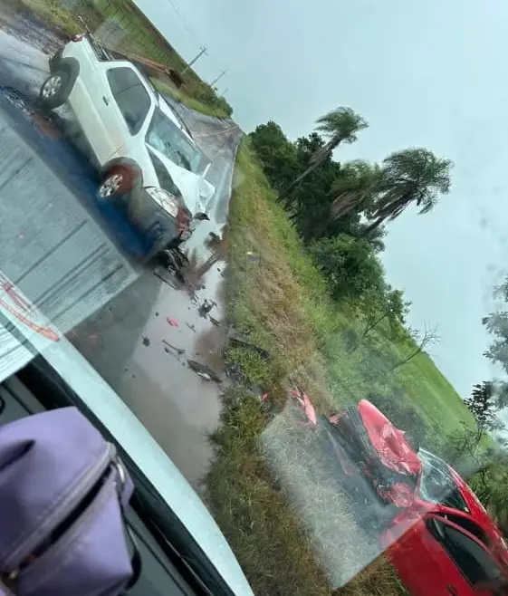 Dois veículos bateram de frente na tarde de sexta-feira (13) na BR-080, rodovia que liga Campo Grande a Rochedo. O acidente aconteceu durante a chuva na tarde de ontem, e quatro pessoas ficaram feridas.