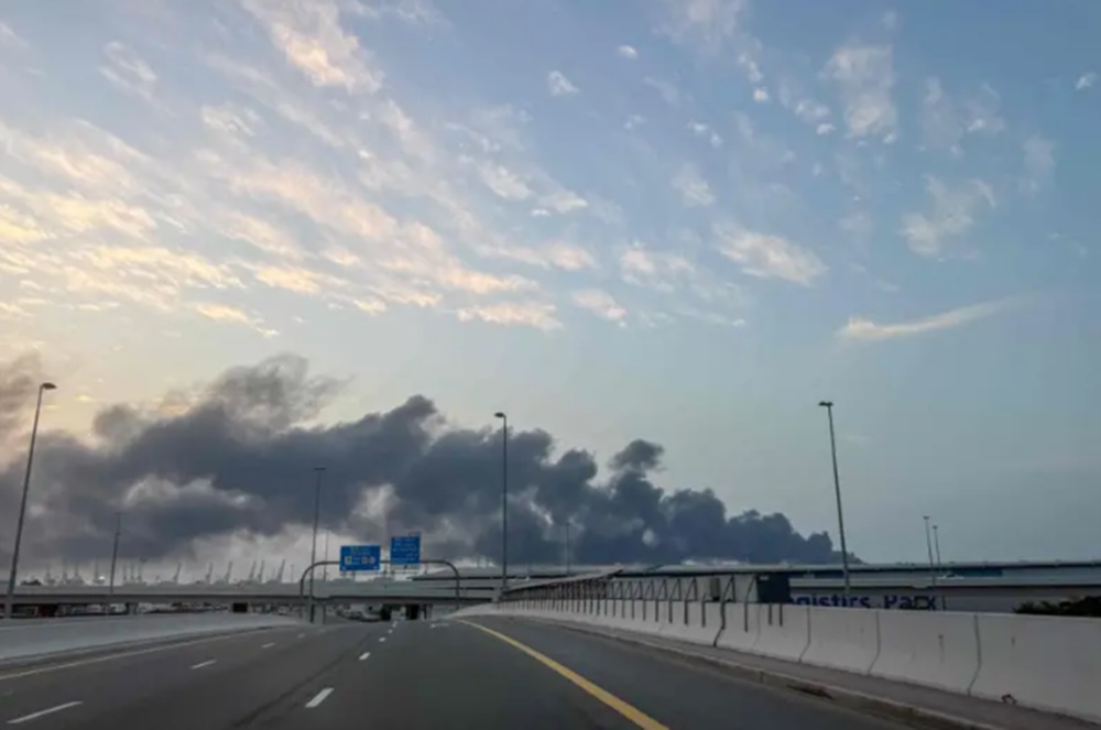 Destroços de um drone também provocaram um pequeno incêndio na fachada do icônico hotel em forma de vela Burj Al Arab.