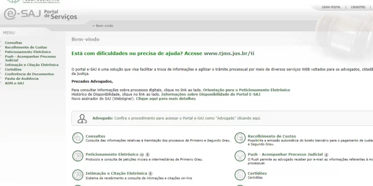 O Portal e-SAJ, do TJ-MS (Tribunal de Justiça de Mato Grosso do Sul), apresenta instabilidades na manhã desta terça-feira (28). O site auxilia advogados, cidadãos e serventuários da justiça com troca de informações e trâmites processuais.