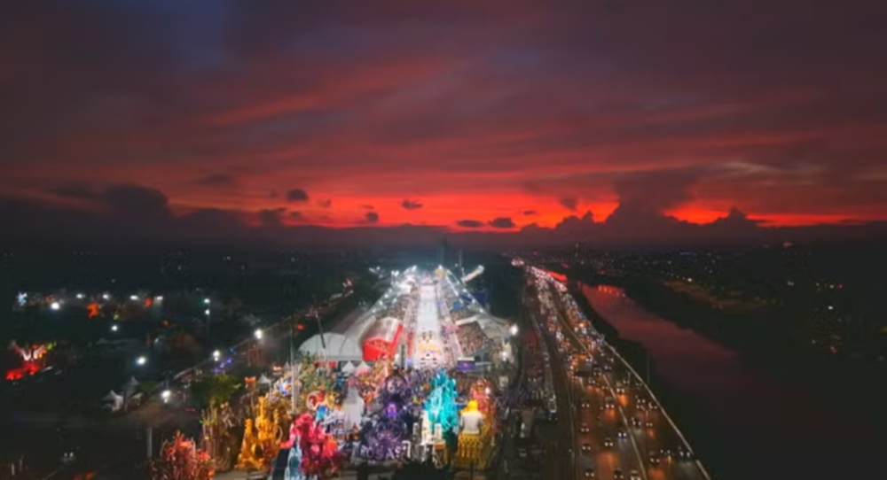 Dia amanhece no Sambódromo do Anhembi neste sábado (14) — Foto: Reprodução/TV Globo
