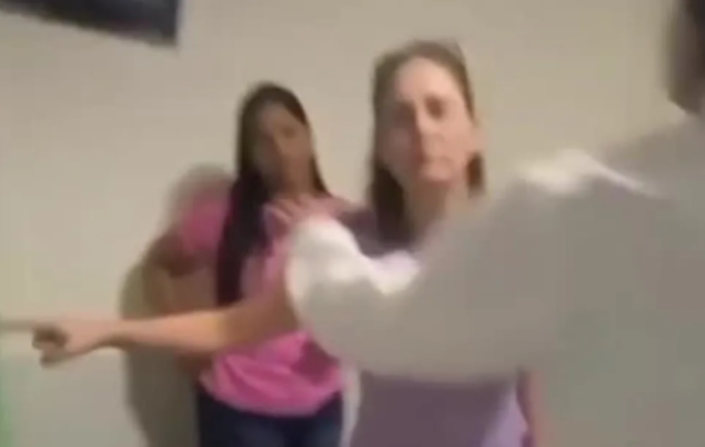 “Saia daqui”, repete a mulher por diversas vezes. Após a vítima se recusar a sair da sala, iniciam-se as agressões.