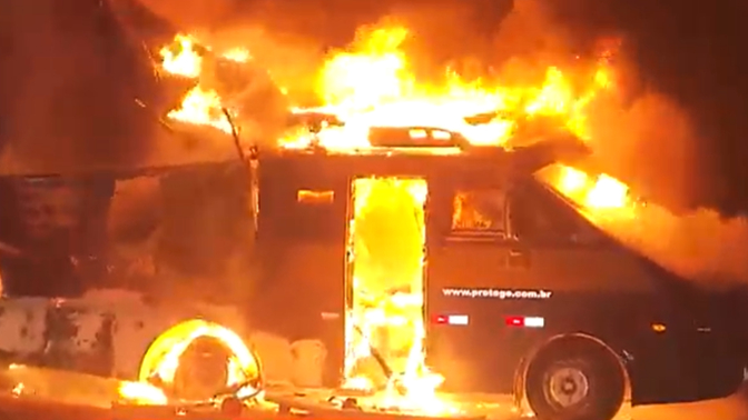 SP: criminosos atacam carro-forte em rodovia e ateiam fogo no veículo durante fuga 10 de setembro de 2024
