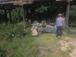 Uma mulher de 39 anos, um adolescente de 12 e uma criança de 8 anos ficaram feridos após o carro que ocupavam cair de uma
