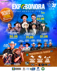 A cidade de Sonora já está em clima de festa! Começa nesta sexta-feira (30) a Exposonora 2025, evento em comemoração aos 37 anos de emancipação