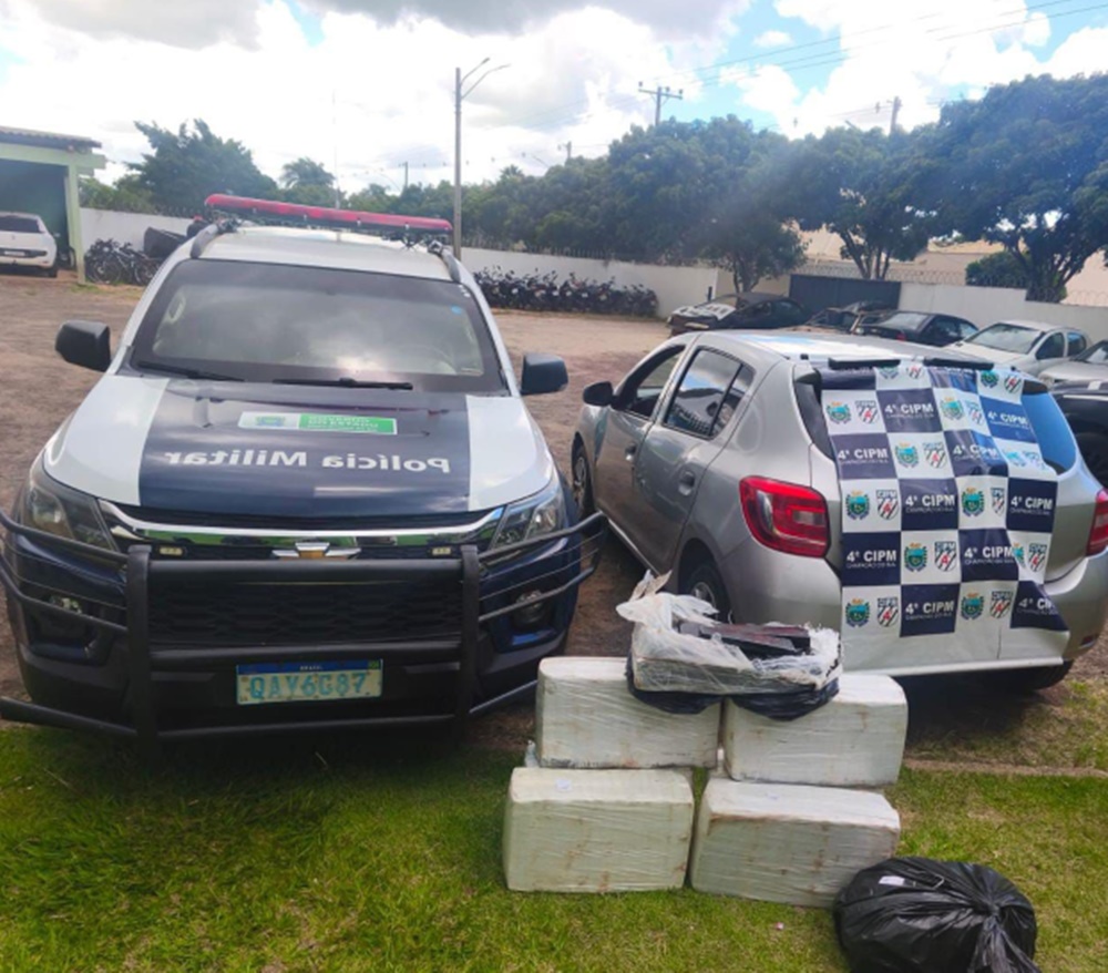 Na vistoria realizada no porta-malas, foram encontrados oito fardos de substância análoga à maconha, que, após pesagem, totalizaram 153,060 quilos.