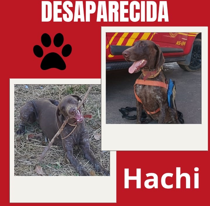 Quem tiver informações sobre o paradeiro de Hachi pode entrar em contato com o Corpo de Bombeiros pelo número de emergência 193 ou pelo WhatsApp (67) 99998-0860.