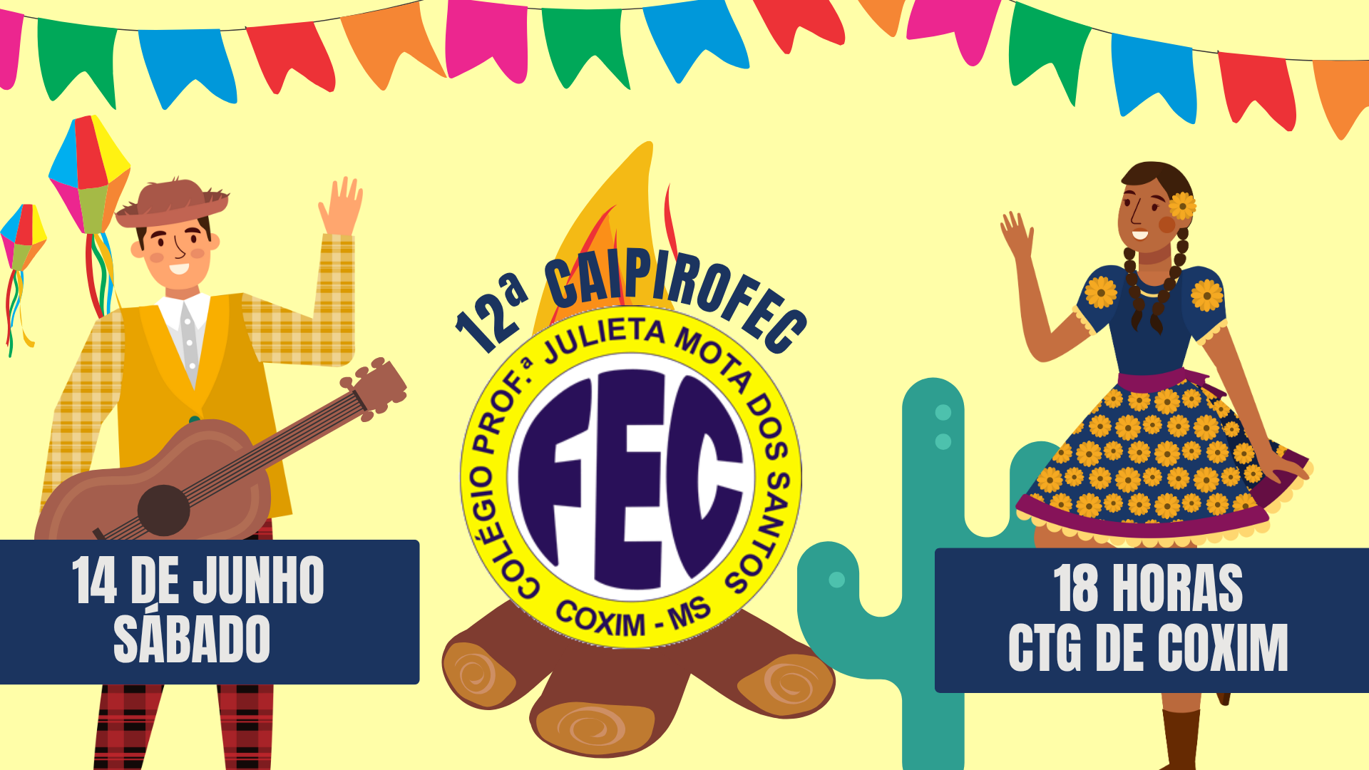 No próximo sábado, dia 14 de junho, Coxim será palco de mais uma edição da CAIPIROFEC, a tradicional festa junina promovida pelo Colégio Julieta Mota dos Santos, da Fundação Educacional de Coxim (FEC). A 12ª edição do evento acontecerá no CTG (Centro de Tradições Gaúchas), reunindo alunos, professores e familiares em uma noite de cultura, alegria e sabores típicos.