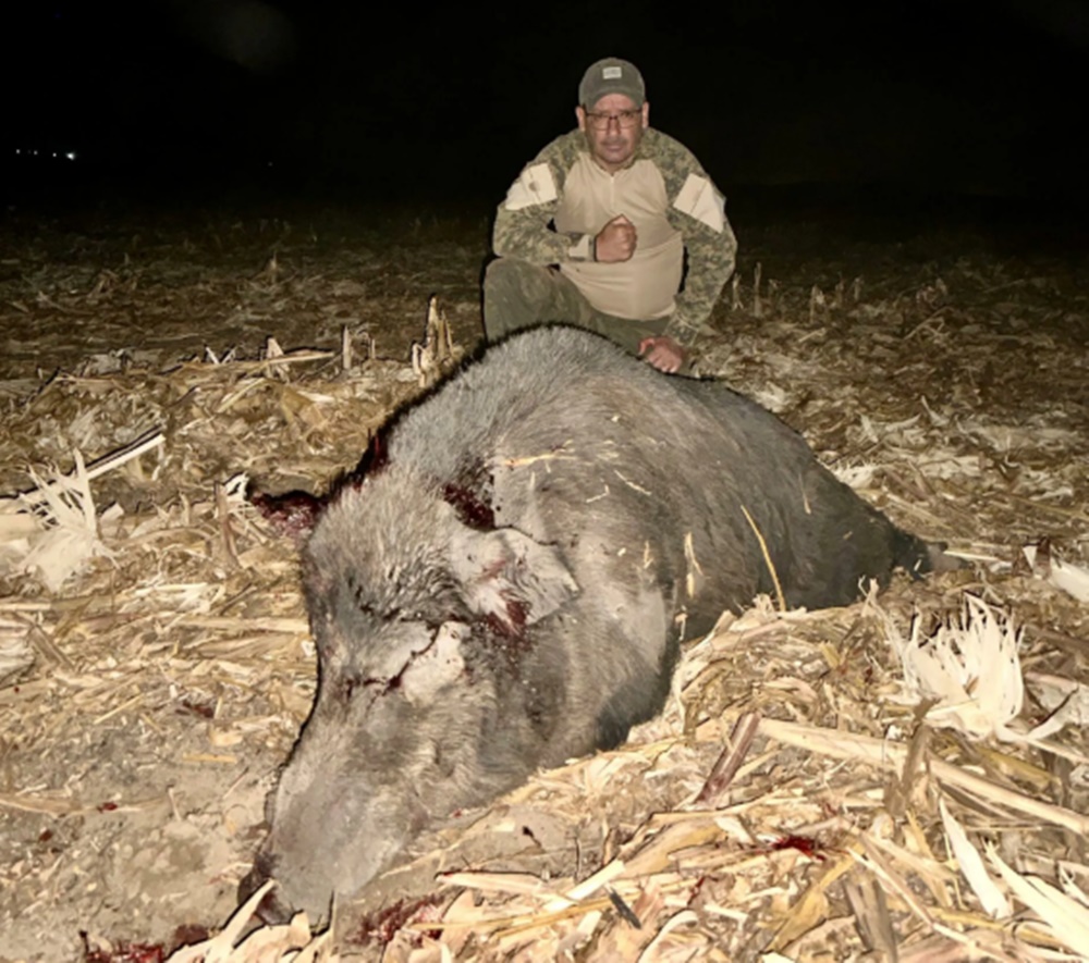 O grupo já havia avistado o javali cerca de 30 dias antes, mas só conseguiu realizar a aproximação na última semana. Utilizando um aparelho de visão termal para identificar o animal em meio à lavoura colhida, localizaram dois exemplares: uma fêmea e o gigante macho.