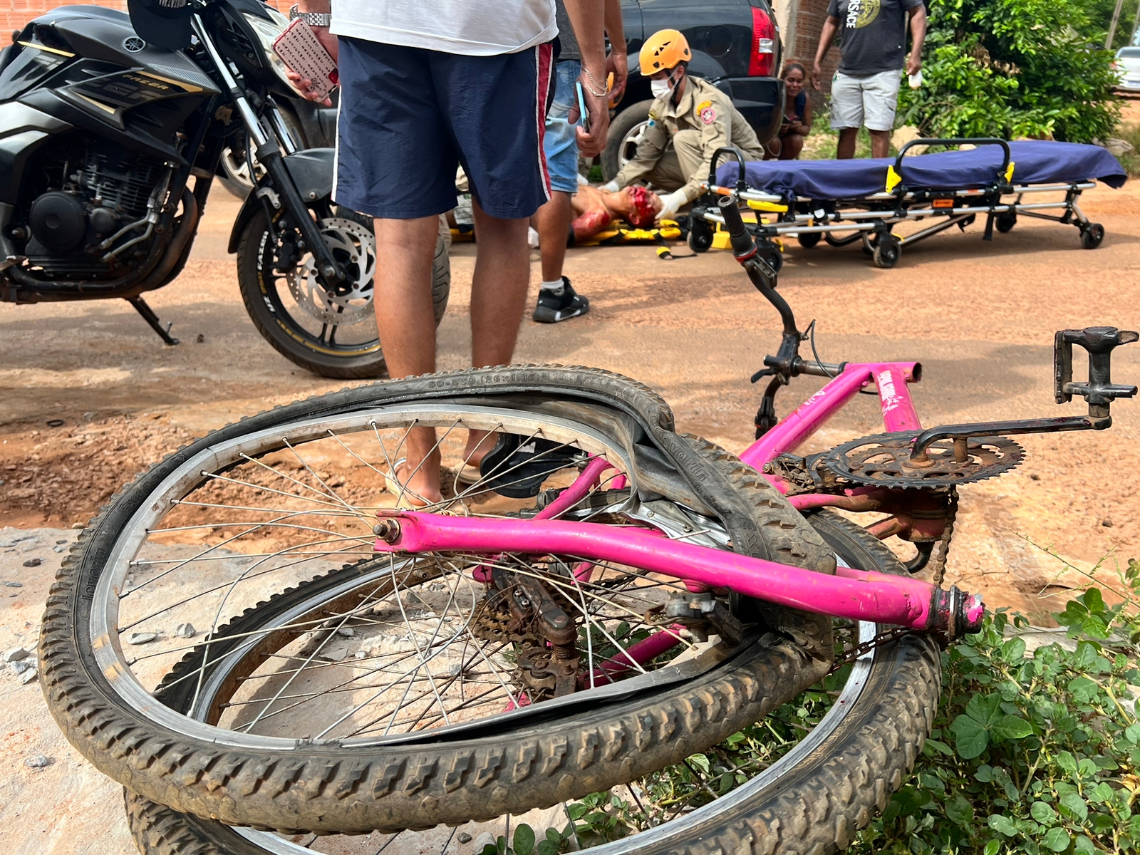 Valderlei Gomes, de 21 anos ficou gravemente ferido em um acidente com um caminhão na tarde desta terça-feira (10) na Rua Gilberto Reginaldo dos Santos com a rua Paulo Fagundes, no bairro Senhor Divino, em Coxim.
