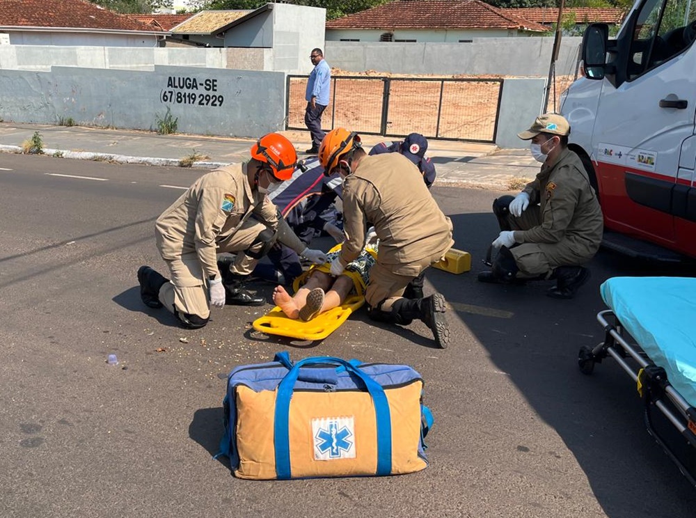 Colisão entre carro e motocicleta deixa senhora ferida no centro de Coxim