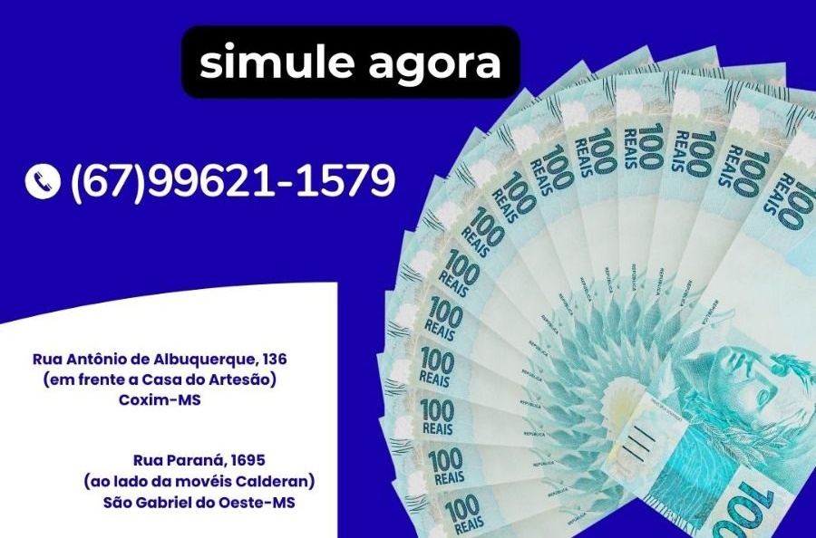 A empresa Dinheiro Fácil – Solicitações de Empréstimos e Agência de Turismo está com atendimento ativo em Coxim e São Gabriel do Oeste, oferecendo diferentes modalidades de crédito para a população.