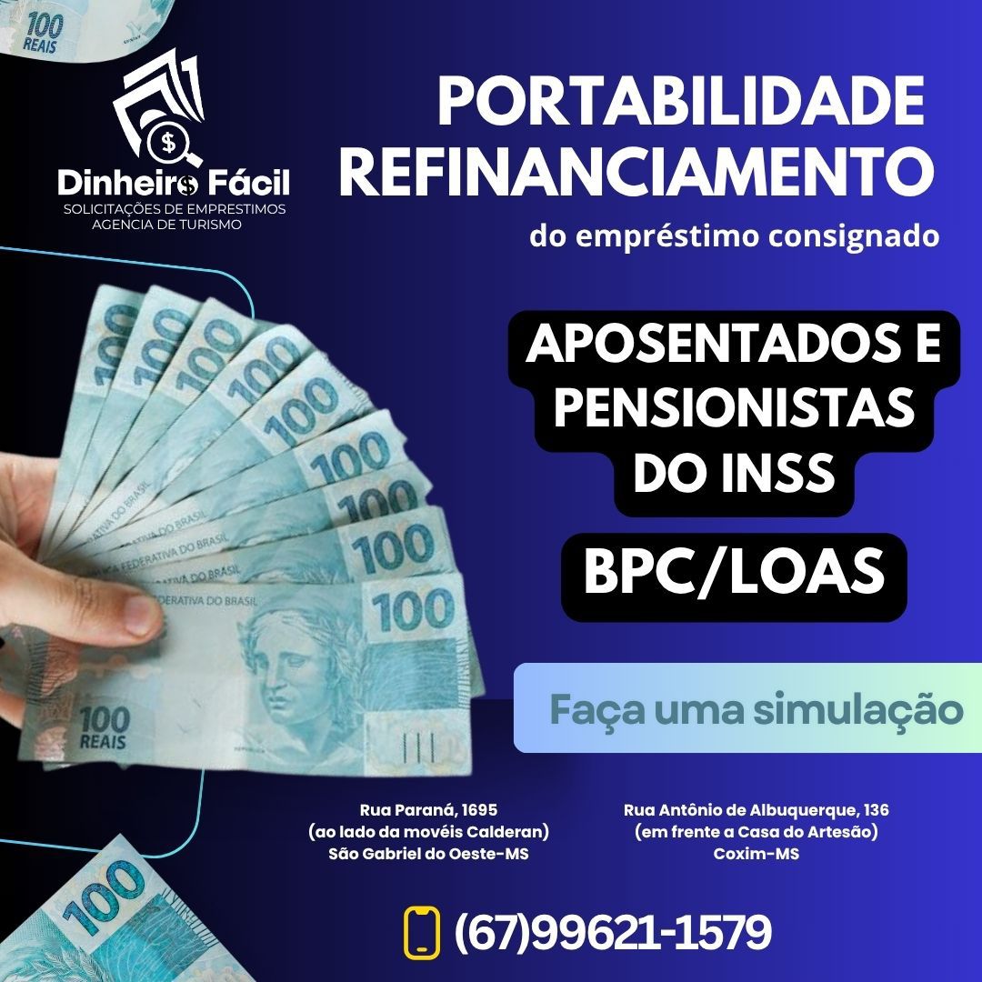 A empresa Dinheiro Fácil, especializada em solicitações de empréstimos consignados e também atuando como agência de turismo, está com condições especiais para quem deseja fazer portabilidade ou refinanciamento de crédito com mais vantagens.