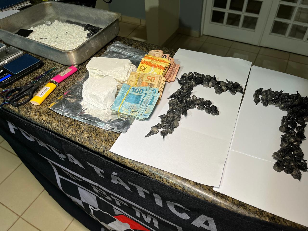 Todos os presentes receberam voz de prisão. Entre eles estava o principal suspeito, um homem de 31 anos já conhecido da polícia por denúncias de tráfico. Ele seria o responsável por utilizar a residência como ponto de fracionamento e embalagem da droga, possivelmente destinada à venda em um bar de sua propriedade. No momento da abordagem, ele embalava a cocaína e estava com R$ 5.889,00 sem comprovação de origem.