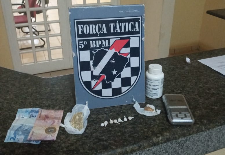 Foi feito revista pessoal e encontraram 7 trouxinhas de pasta base de cocaína em seu bolso. No interior da residência foi localizado mais duas paradinhas da mesma droga. Os militares também conseguiram abordar com um homem de 40 anos que teria ido ao local com R$ 10,00 para comprar entorpecente.