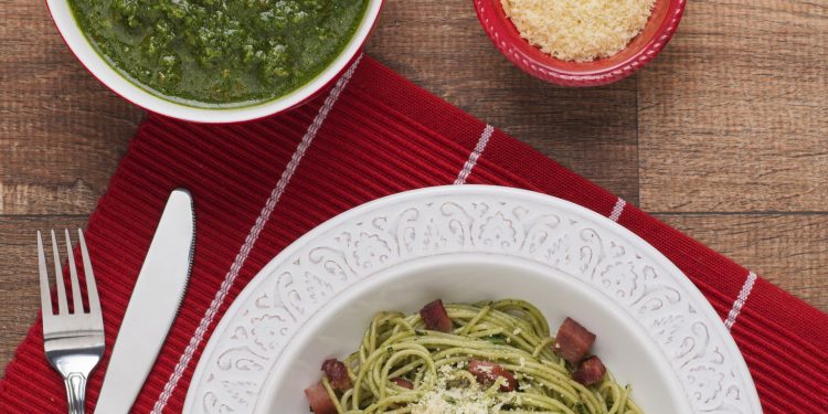 É fã de massas, gosta de incrementar suas refeições e sair da mesmice? Então veja como preparar um delicioso Espaguete com Calabresa, Pesto de coentro e Bacon.