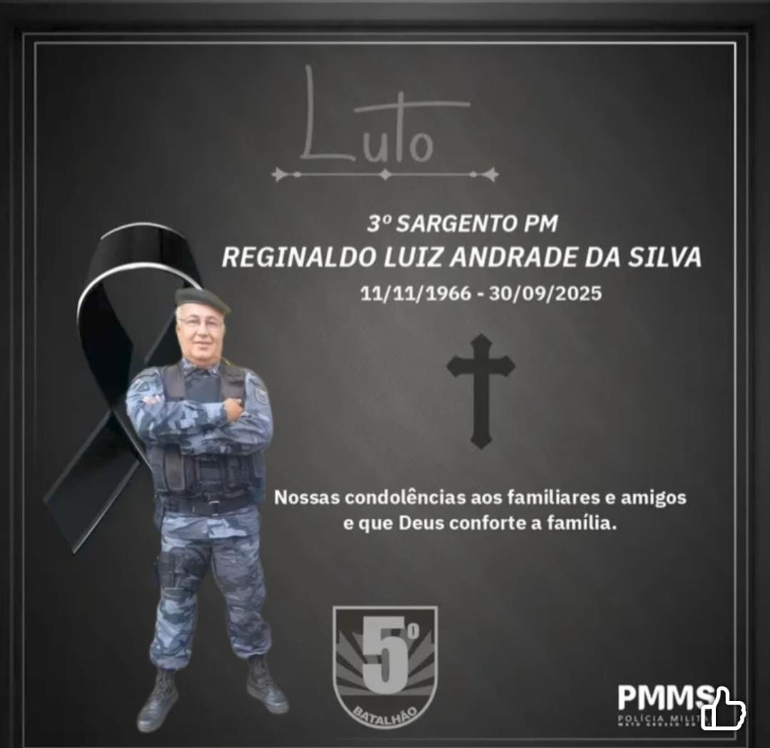 A terça-feira (30) foi marcada por luto e pesar em Coxim com a notícia do falecimento do 3º Sargento da Polícia Militar, Reginaldo Luiz Andrade da Silva, aos 59 anos.