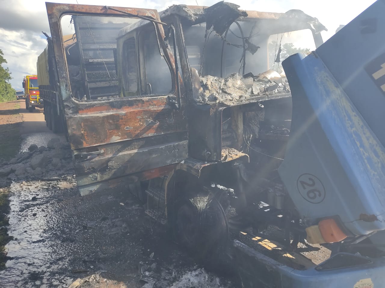 Uma carreta pegou fogo na tarde desta terça-feira (08), no KM 781 da BR-163, entre os municípios de Coxim e Sonora. O incidente mobilizou equipes do Corpo de Bombeiros e da CCR MSVia.