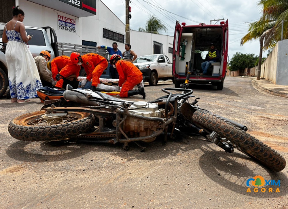 Colisão entre motocicletas deixa dois feridos no bairro Senhor Divino, em Coxim