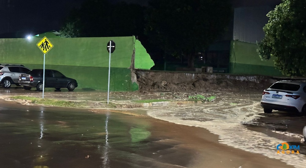 De acordo com informações apuradas, o grande volume de água concentrado em um curto intervalo de tempo provocou enxurradas intensas, que acabaram comprometendo a estrutura do muro, fazendo com que ele cedesse. Parte do material ficou espalhada pela calçada e pela via pública, enquanto a água barrenta tomou conta da rua, dificultando a passagem de veículos e pedestres.