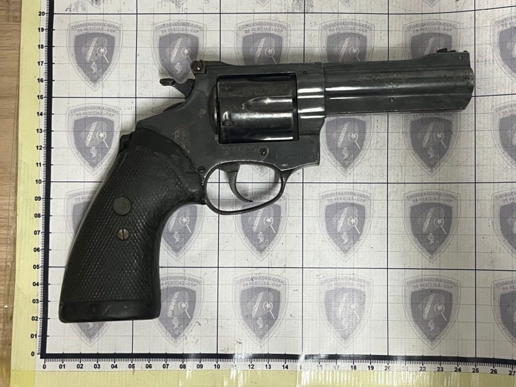 A perícia constatou que a arma utilizada era um revólver calibre .357, com cinco munições, sendo duas deflagradas. No local também foram apreendidas porções de maconha totalizando 575 gramas.