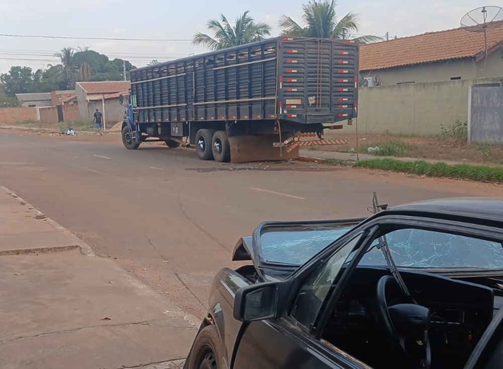 Um motorista ficou ferido na madrugada deste sábado (13), após colidir o carro que dirigia na traseira de um caminhão boiadeiro que estava estacionado na Rua Rondonópolis, no bairro Piracema, em Coxim. O acidente aconteceu por volta das 4h31min.
