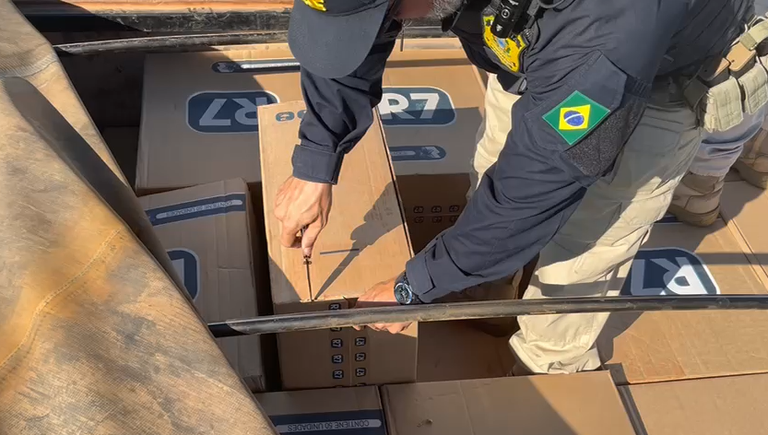 Na tarde desta segunda-feira (8), a Polícia Rodoviária Federal (PRF) realizou uma operação de impacto ao apreender um carregamento expressivo de contrabando em Coxim. A ação ocorreu durante uma fiscalização rotineira na BR-163, onde os policiais abordaram um caminhão Volvo/FH, acoplado a dois semirreboques.