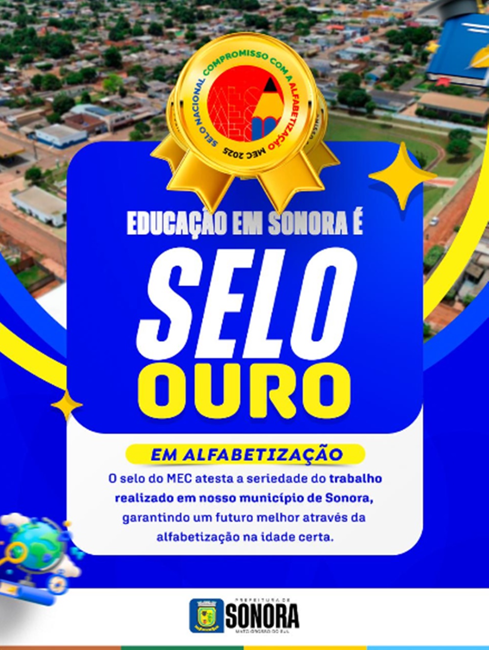 O município de Sonora foi contemplado com o Selo Ouro do Ministério da Educação (MEC), ano 2025, no âmbito do Compromisso Nacional Criança Alfabetizada (CNCA). O reconhecimento é concedido aos municípios que atingem elevados padrões na garantia da alfabetização das crianças na idade certa, com qualidade, equidade e políticas públicas eficazes.