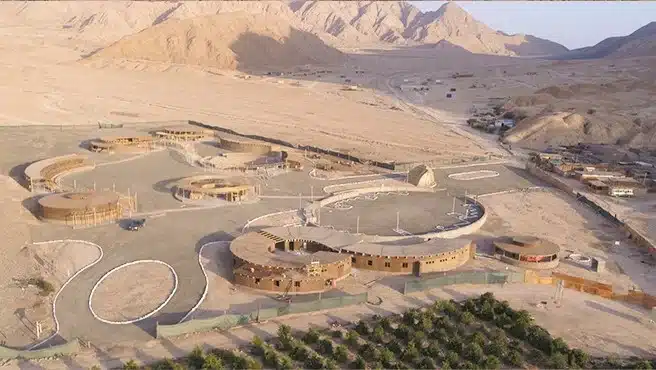 As imagens de drone divulgadas pelos pesquisadores mostram que o centro da cidade é marcado por uma estrutura circular em um terraço na encosta, com restos de edifícios de pedra e barro construídos a cerca de 600 metros acima do nível do mar.