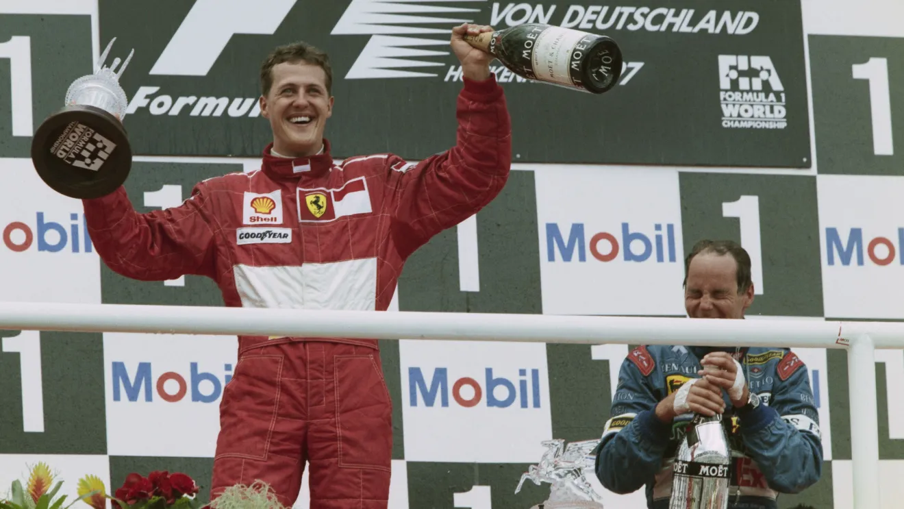 Michael Schumacher tem, atualmente, 54 anos. O ex-piloto teve notória carreira na Fórmula 1 em dois períodos: 1991 a 2006 e 2010 a 2012. O alemão passou por Jordan (1991), Benetton (1991-1995), Ferrari (1996-2006) e Mercedes (2010-2012). Ele conquistou sete títulos mundiais: 1994, 1995, 2000, 2001, 2002, 2003, 2004.