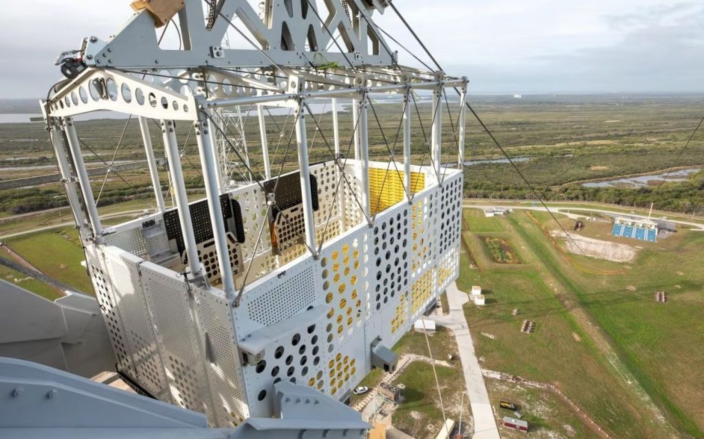 - 17h30: A plataforma de lançamento da Artemis II também inclui quatro cestos de saída de emergência que, semelhantes a gôndolas em teleféricos, podem remover com segurança os astronautas da plataforma móvel onde o foguete está posicionado e levá-los até a base da plataforma