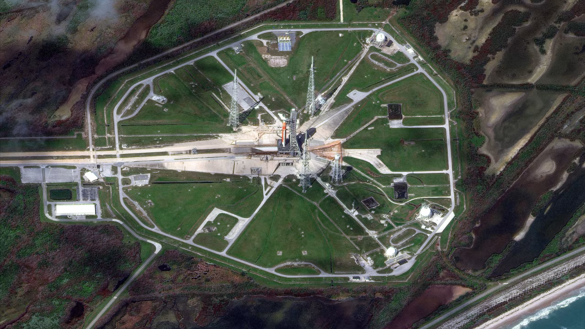 18h07: Uma perspectiva única que você talvez não tenha visto do foguete SLS e da cápsula Orion.A empresa aeroespacial e de defesa Vantor compartilhou imagens de satélite que mostram o ponto de lançamento.