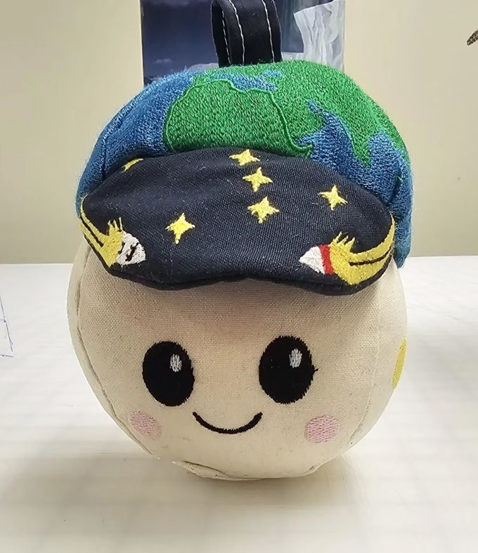 - 17h15: Durante anos, as missões espaciais tripuladas levaram um passageiro clandestino especial para o espaço: um indicador de gravidade zero. Embora o nome possa parecer técnico, o indicador de gravidade zero geralmente é um pequeno e adorável brinquedo de pelúcia que tem algum significado para a tripulação e desempenha um papel fundamental após o lançamento. “Rise” (imagem abaixo), foi projetado por Lucas Ye, de Mountain View, Califórnia, e é o indicador de gravidade zero que viajará com a tripulação da Artemis II ao redor da Lua.