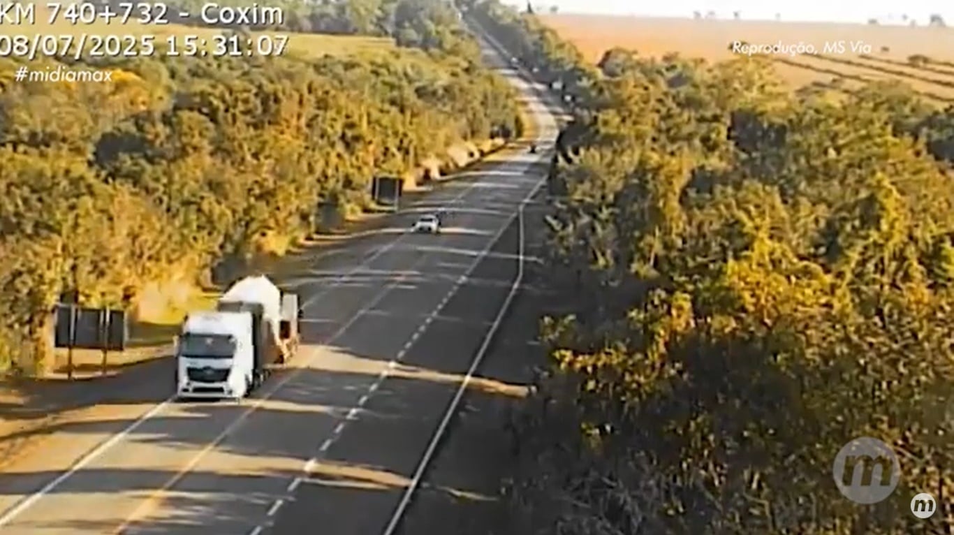A elefanta Kenya, de 44 anos, cruzou o estado de Mato Grosso do Sul, na tarde de ontem (8), após ser liberta de cativeiro na Argentina. Câmeras da MS Via flagraram o momento em que Kenya passava no veículo de transporte pela BR-163.