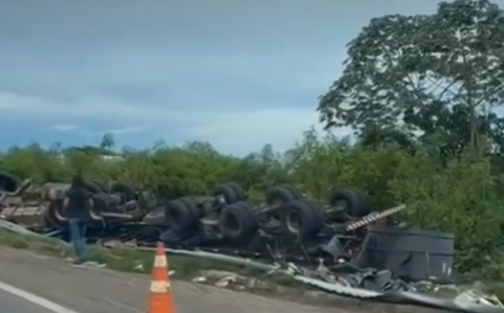 A carreta tombou às margens da rodovia e, por esse motivo, não houve registro de congestionamento. A PRF (Polícia Rodoviária Federal) acompanhou a ocorrência.