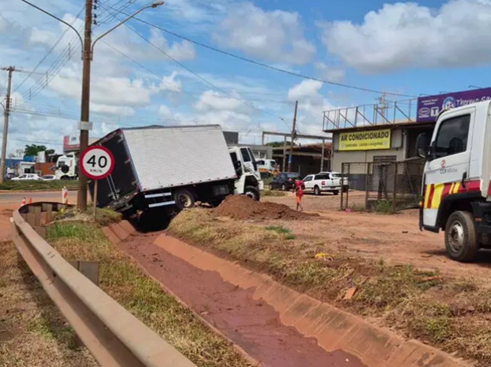 A Motiva Pantanal afirmou que a canaleta de drenagem localizada ao lado da BR-163, no km 475, não é uma obra improvisada e cumpre função essencial para a segurança da rodovia. Ontem (10), caminhão-baú caiu na valeta e comerciante reclamou que a situação é recorrente. A reclamação havia sido encaminhada por meio do Direto das Ruas.