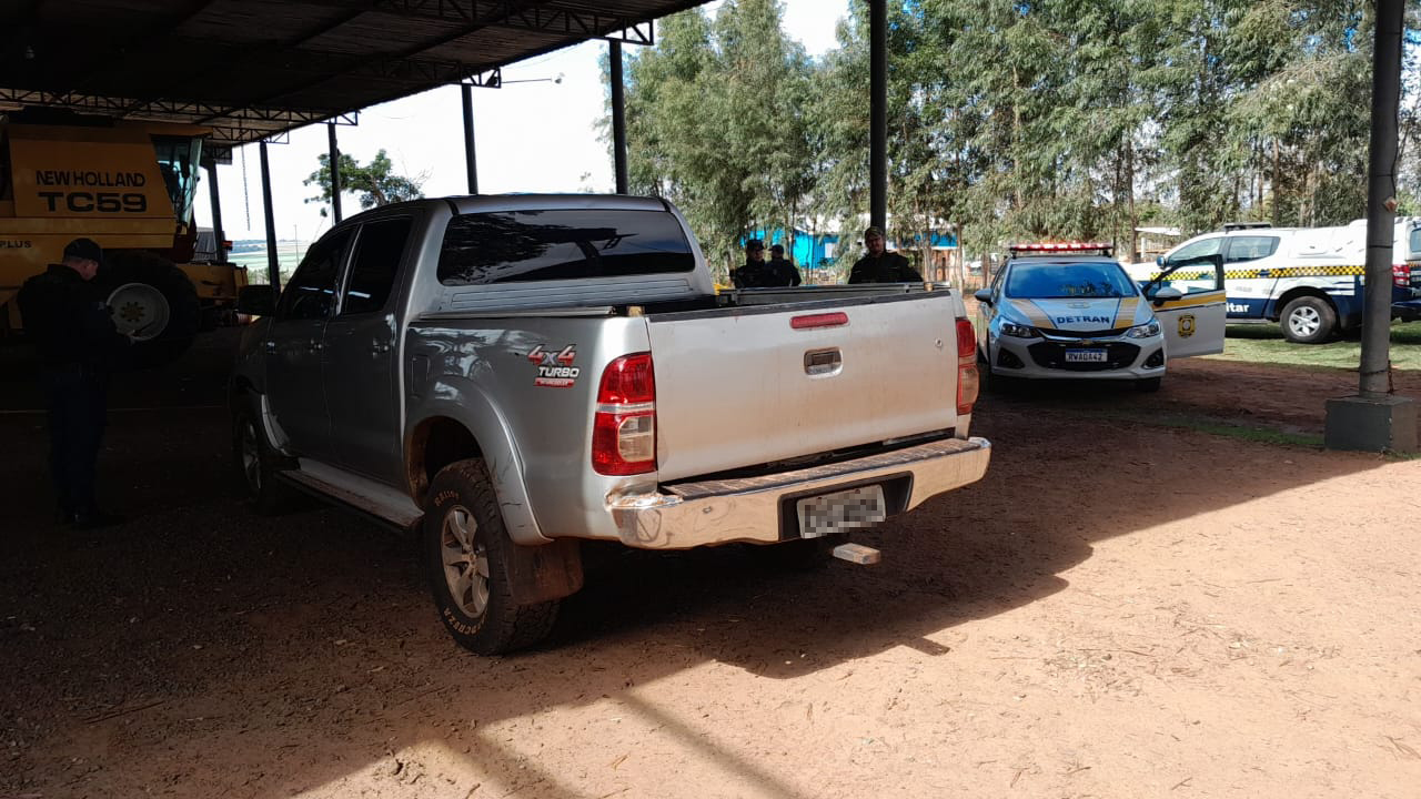 Com apoio da Polícia Militar (PM), o veículo foi seguido até uma propriedade rural, onde o motorista abandonou a Hilux e fugiu correndo para local desconhecido. A caminhonete foi apreendida.