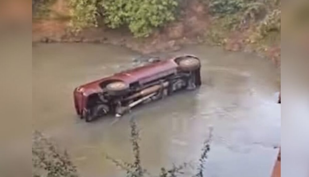 A caminhonete foi parar dentro do rio, e até agora não se sabe o que causou a queda.