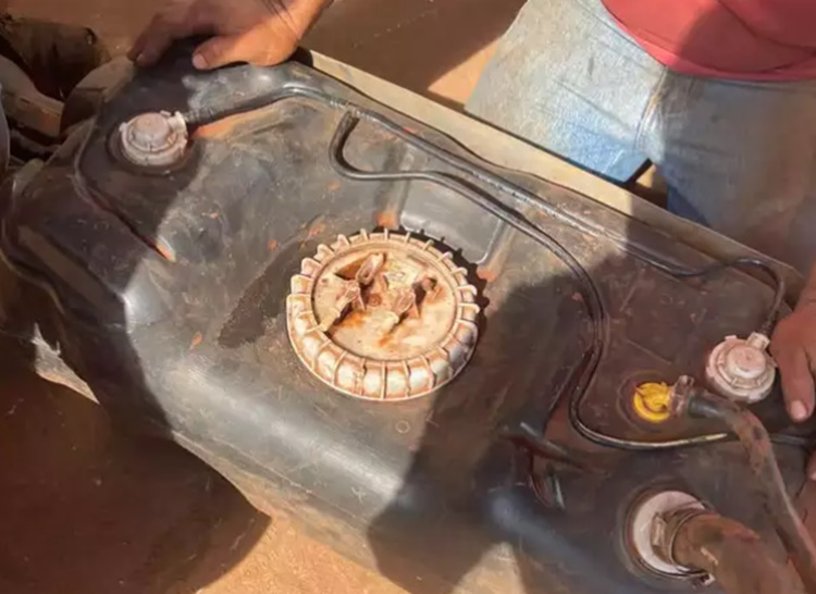 Tanque de combustível onde o entorpecente estava escondido. (Foto: Reprodução/Polícia Federal)