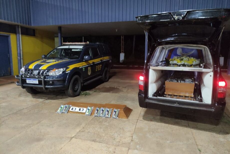 A Polícia Rodoviária Federal (PRF) apreendeu durante a noite desta quinta-feira (29), 162kg de cocaína que estavam escondidos dentro de um caixão funerário, em Terenos (MS).