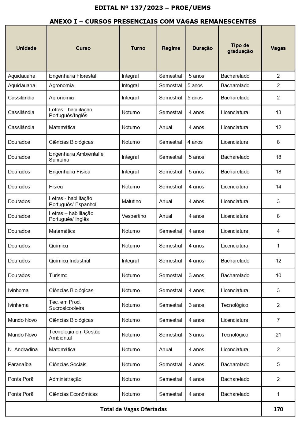 O objetivo segundo a instituição é selecionar candidatos e candidatas para o preenchimento de vagas remanescentes nos cursos de graduação da UEMS. Clique aqui e confira o edital.