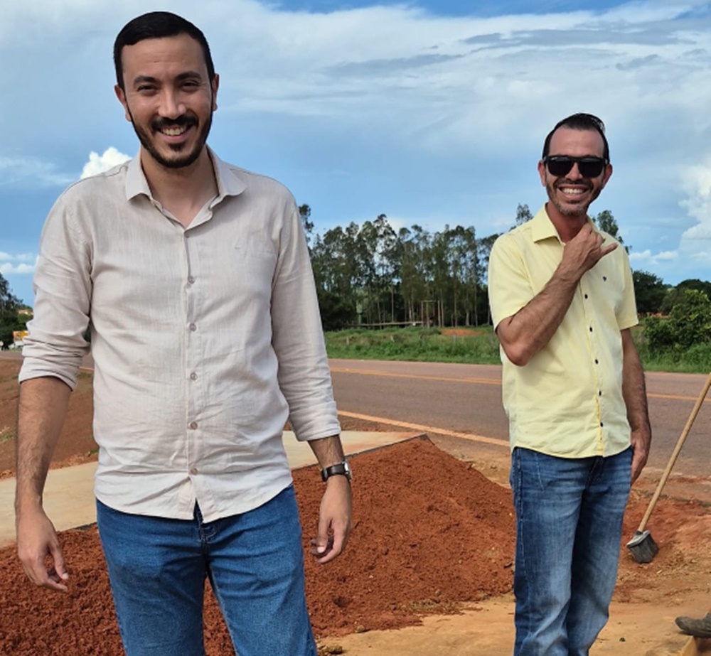 O prefeito de Pedro Gomes, Delegado Murilo, esteve no bairro Galdina, na entrada da cidade, às margens da MS-215, ponto que marca o início da zona urbana do município, para acompanhar de perto o andamento das obras da nova praça que está sendo implantada no local.