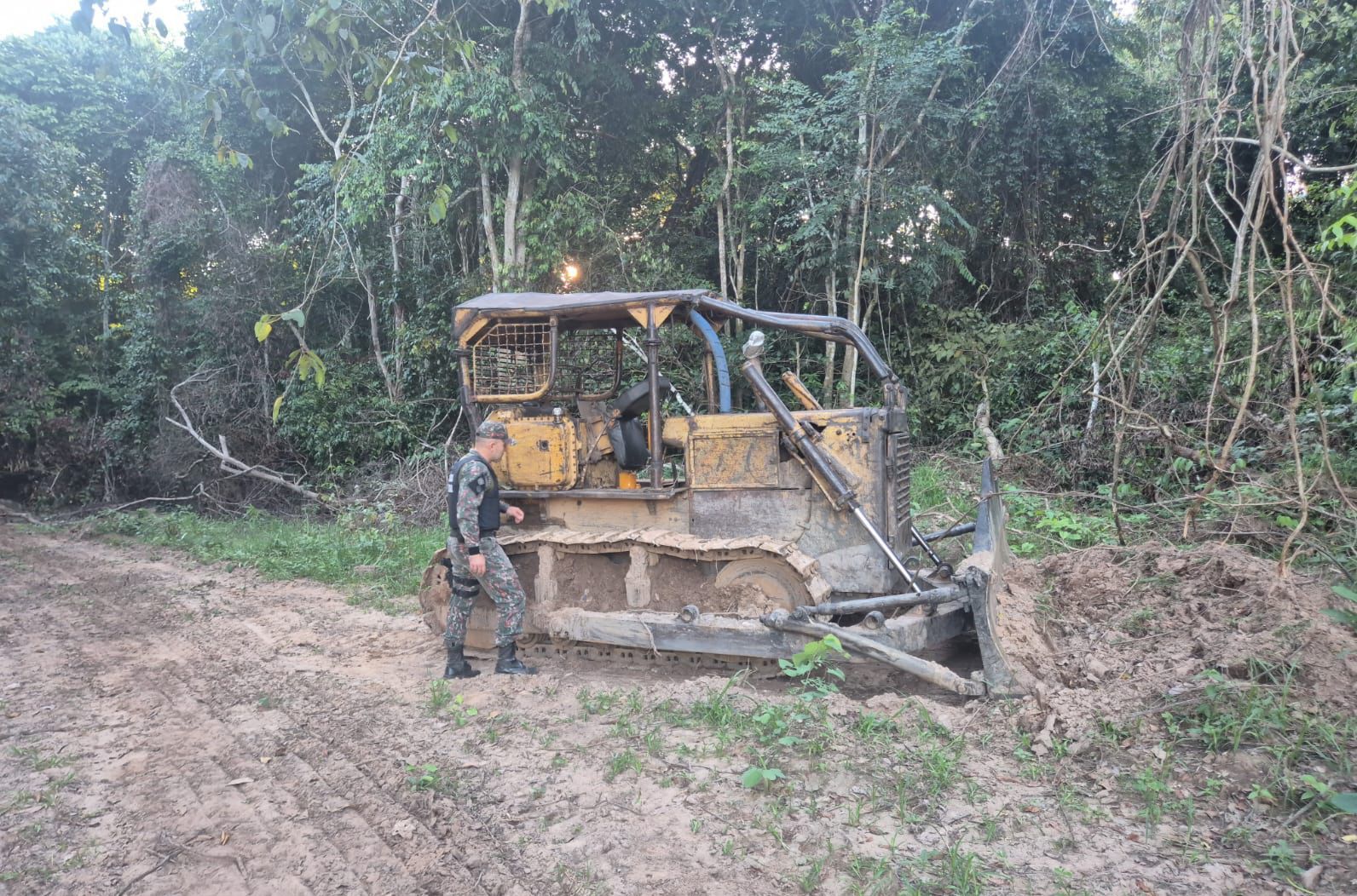 Durante a fiscalização, também foram encontradas madeiras provenientes da atividade irregular, oriundas da limpeza de pastagem e da abertura de aceiros. A equipe ainda identificou a presença de maquinário no local, incluindo um trator de esteira utilizado na supressão da vegetação.