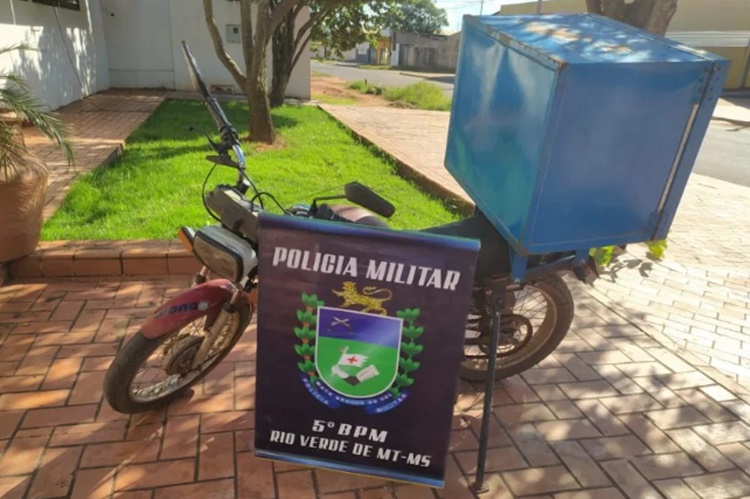 A Polícia Militar apreendeu na tarde deste domingo (05) uma motocicleta irregular, no bairro Jardim Semíramis, em Rio Verde de MT (MS)