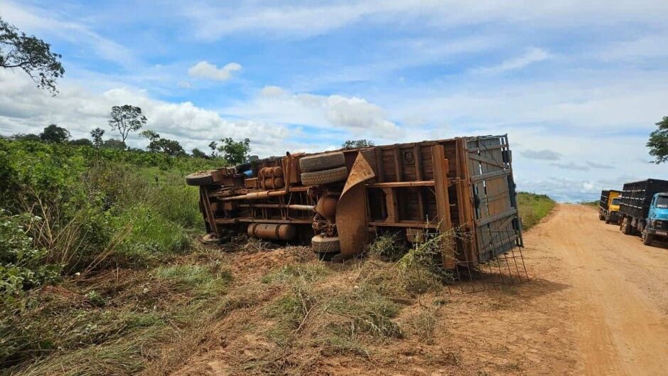 O veículo transportava trabalhadores rurais e, segundo apurado no local, o condutor teria perdido o controle da direção após um problema mecânico, ocasionando a saída da pista e posterior tombamento. Duas pessoas que estavam na carroceria foram socorridas.